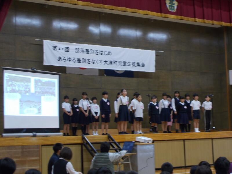 大津町の小中学生が一堂に集って、「部落差別をはじめあらゆる差別をなくす」という思いを交流する集会です。