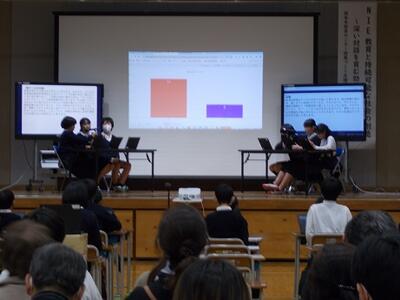 公開授業は、4年1組の社会科と6年3組の国語科で行いました。(写真は、6年生国語ディベカッション)