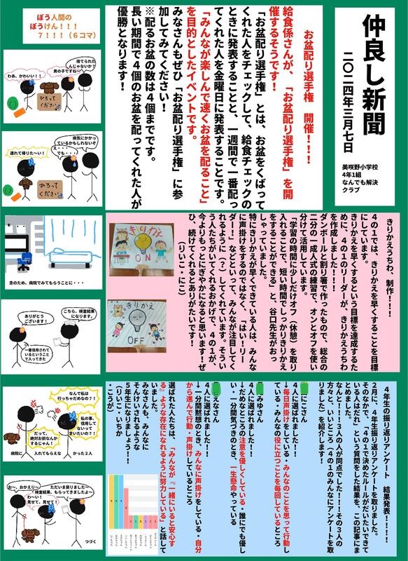 私が楽しみにしている4年生の「仲良し新聞」が発行されましたので、 ご紹介します。