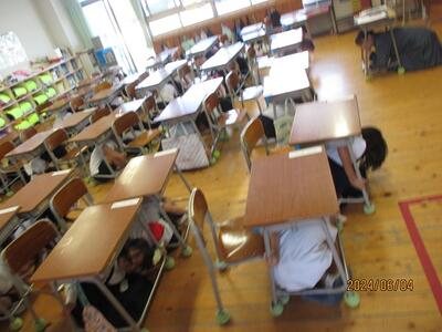 避難指示の放送から全員集合・安全確認までの時間は4分24秒。