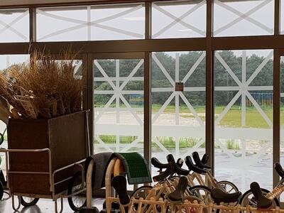 外回りのお掃除セットも避難。特に風が強く当たる窓は、養生テープを惜しみなく貼りました。