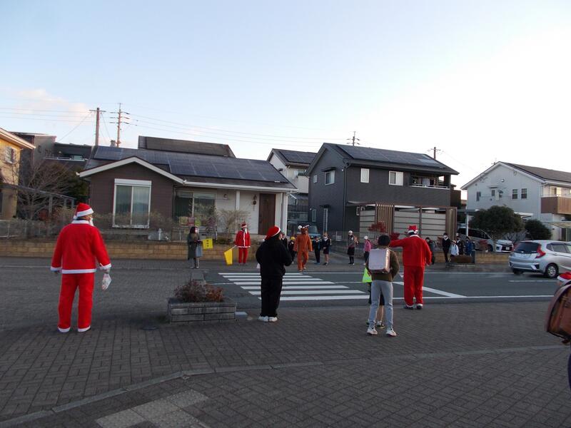12月24日、今年最後の登校日の朝は、サンタさんと仲間たちが登場しました。