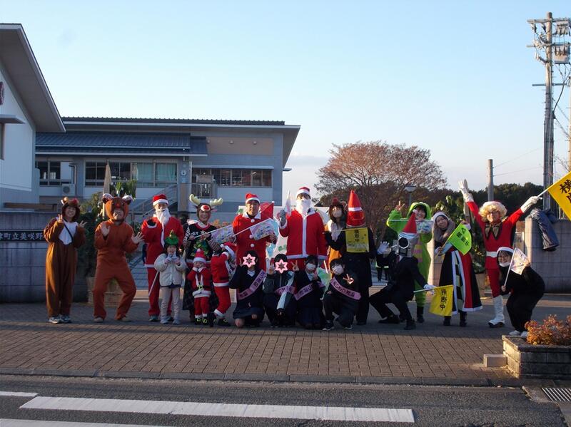サンタファミリーによる旗振りは、子どもたちも大喜びで、立ち止まってなかなか門の中に入らないほど。