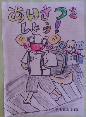 児童企画委員会で、あいさつを呼びかけるポスターを作りました。