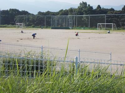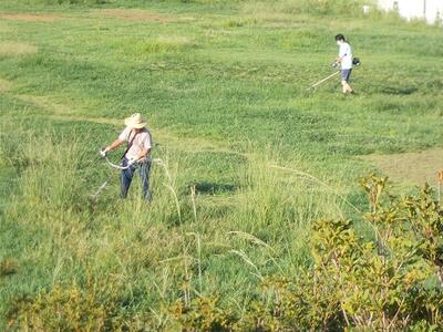 草たちが元気に成長した敷地のあちこちを 分担して作業しました。