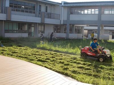 前期後半開始を控え、朝から学校敷地内の除草作業を行いました。