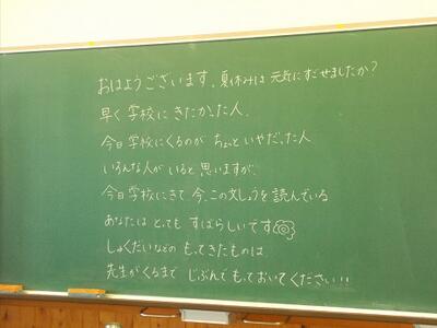 それぞれの教室では、担任からのメッセージ等々が子供たちを迎えます