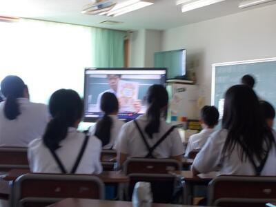 校長講話の中で、生徒指導担当の德永教諭から 「みさきの目安箱」について説明をしています