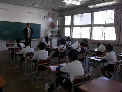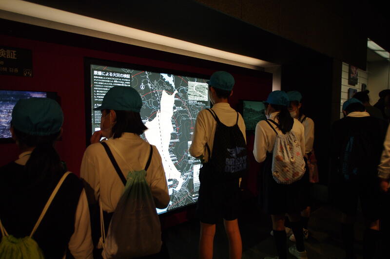 その後、平和公園の近くで被爆体験された方のお話を聞きました。  講師の八木道子さんから、「今日、あなたたちに平和のバトンをわたしました。」と言われました。身近な人たちに、戦争や原爆の恐ろしさと平和の大切さ伝え、隣の人と仲良くすることを誓いました。
