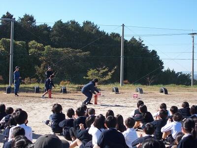 消火訓練は 児童代表と職員代表で・・・ ばっちりでした