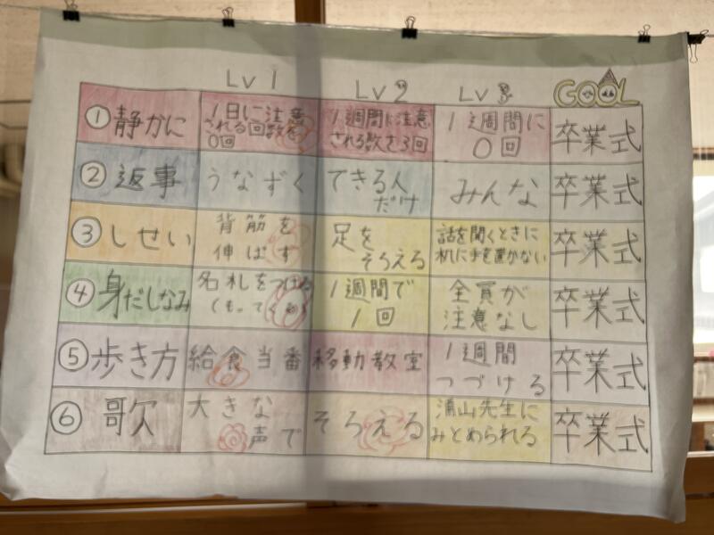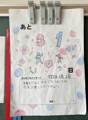 教室の黒板の端っこに、児童手作りのカウントダウンカレンダーが貼られているクラスがあります。また、卒業までにでできるようになりたいことチェックリストを作り、「できるようになったらチェック」をして、お互いを高め合う取り組みをしているクラスもありました。