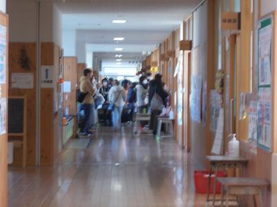 保健室前のホールには、先日、町の史跡カルタ大会で