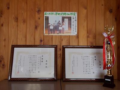 優勝・準優勝した賞状とトロフィーも展示(4年生頑張りました)