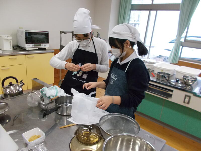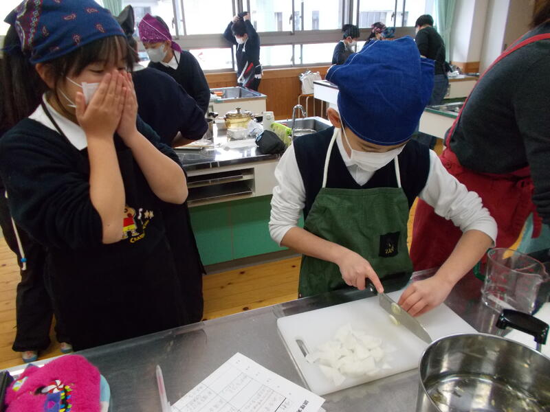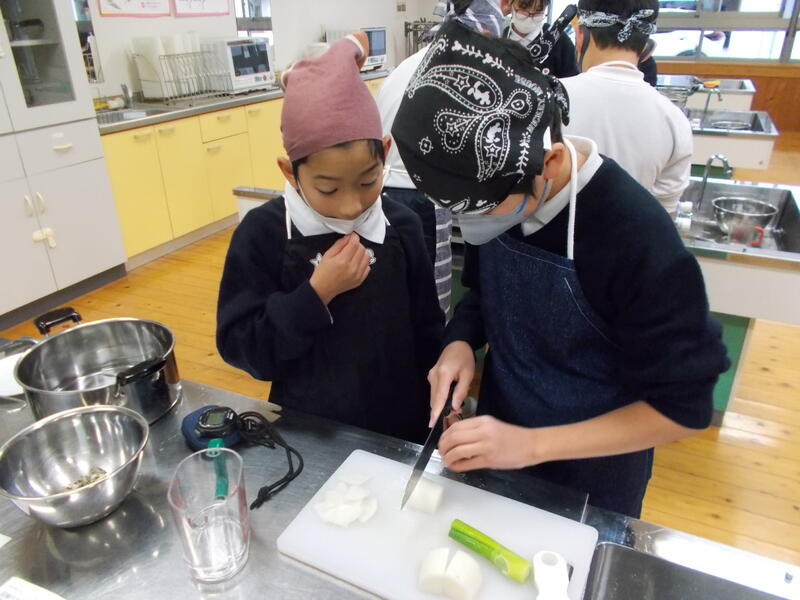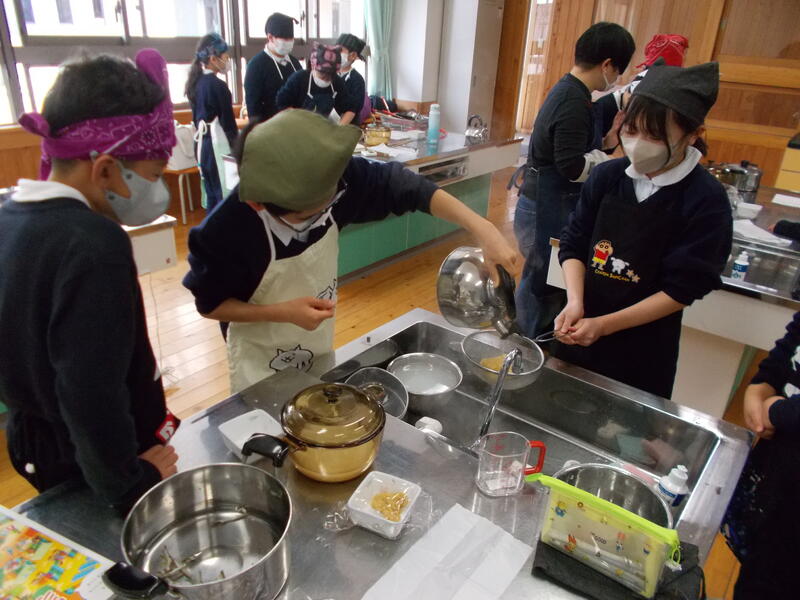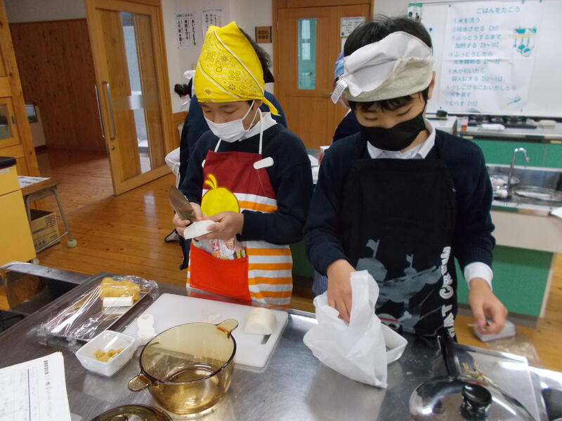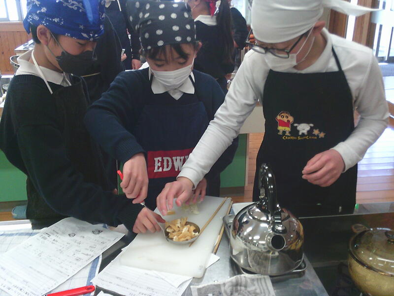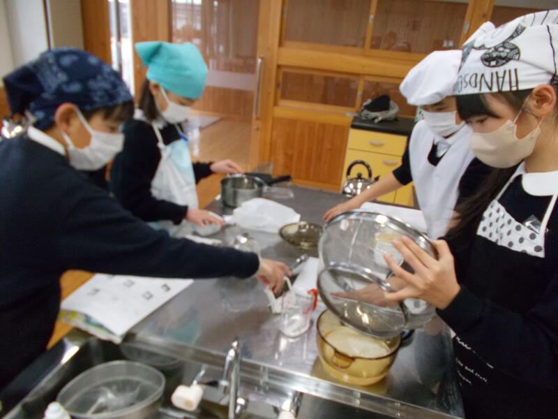 家庭科の学習で,お米をたき,みそ汁を作りました。お家では炊飯器を使っているところが多いと思いますが,調理実習ではガスを使って炊き上げます。また,みそ汁はだしをとるところから丁寧に経験していきました。