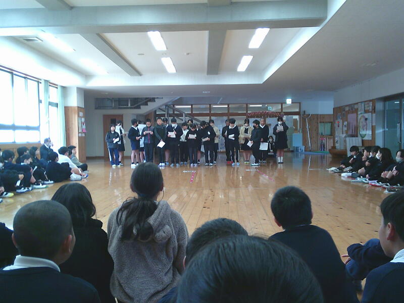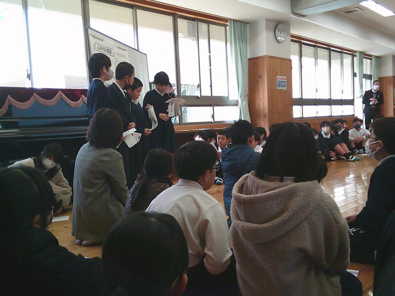 各クラスで1年間の学びを振り返り,考えたことやこれから大切にしていきたいことを発表し合いました。どのクラスの発表も,学びを自分たちの生活とつなげて考え,しっかりと見つめることができていました。