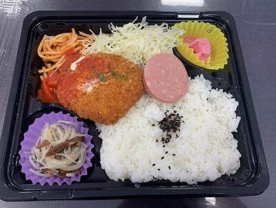 トマトソースのかかった チーズ入りメンチカツがメインです