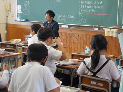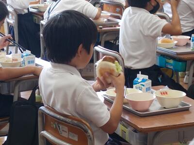 食べるのやめて 目と耳と心で聴く 1年生たち