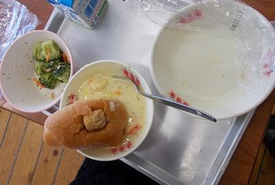 3年生は食欲旺盛で 食缶はいつも空っぽ