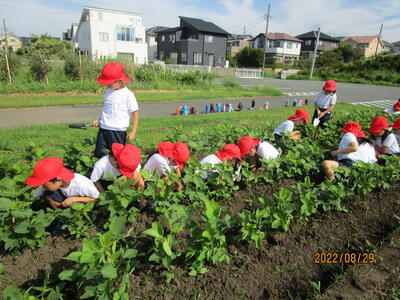 夏休み明けに大豆畑の草取りをしました。昼休みにも葉大豆の様子を見に行ったり、草を取ってくれたりした子ども達もいました。