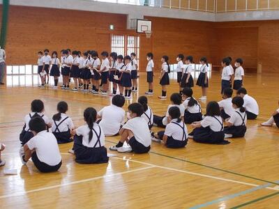 7月5日(水)の5時間目、6年1・2・3組合同で、美咲野小校区にお住まいの防災士の資格を持つ野山ひろみ様に、熊本地震のときの美咲野小の様子を教えていただきました。(美咲野小は避難所として地域の人が集まったそうです。)