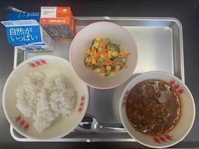 苦手な子も多いおまめさんメニューですが、多くの食缶は空でした
