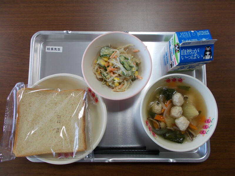今日の給食も具だくさん、野菜たっぷりのメニューでした。つくねとチンゲンサイのスープは、つくねが入っていることで、野菜が苦手な人も食べやすいのではないかなと思いながらいただきました。