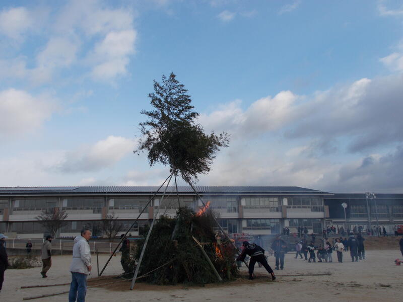 1月12日(日)9:00から本校運動場で、PTA主催のどんどやがありました。大寒波が予想される中、前日に加え、朝早くから準備をしていただきましたPTA役員の皆様をはじめ、美咲野ベースや消防団、地域の皆様には大変お世話になりました。