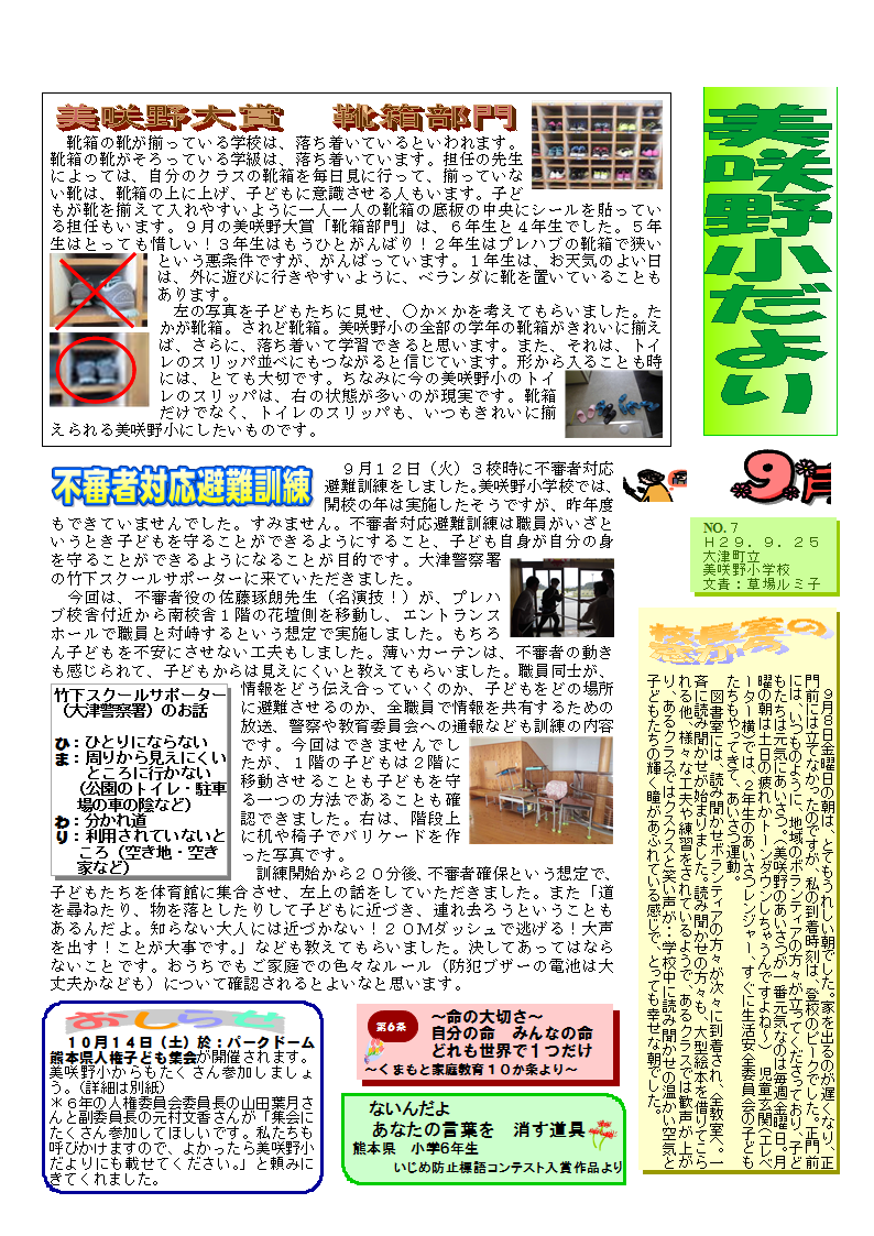 大津警察署から、標記の件についてお知らせがありました。大津町でも児童生徒が被害にあうSNS関連の事例が増えているそうです。詳しくは添付しております資料をご覧下さい。