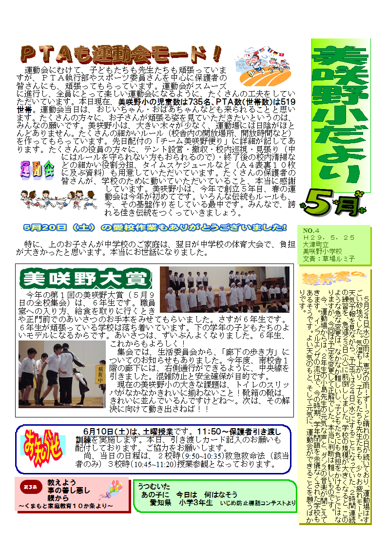 5月24日(土)の運動会は、雨天のため、5月25日(日)に順延させていただきます。急な変更となりますが、ご理解とご協力をよろしくお願いします。