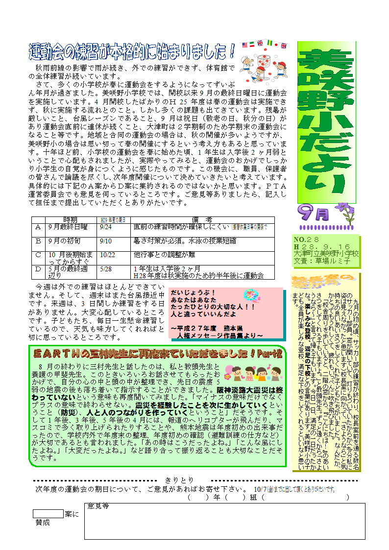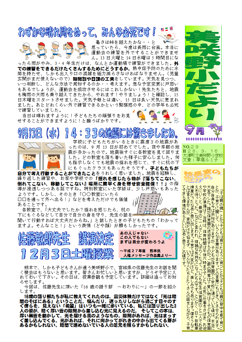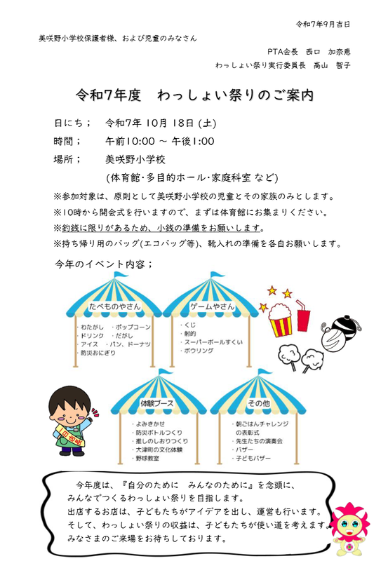 令和7年度美咲野小学校運動会「順延」のお知らせ