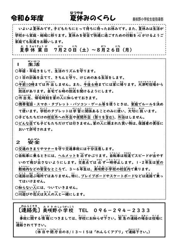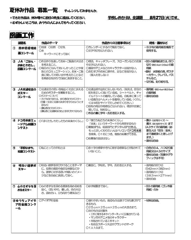 「夏休み作品 募集一覧」を全児童に配布しましたが追加した課題がありますので、ご覧下さい。