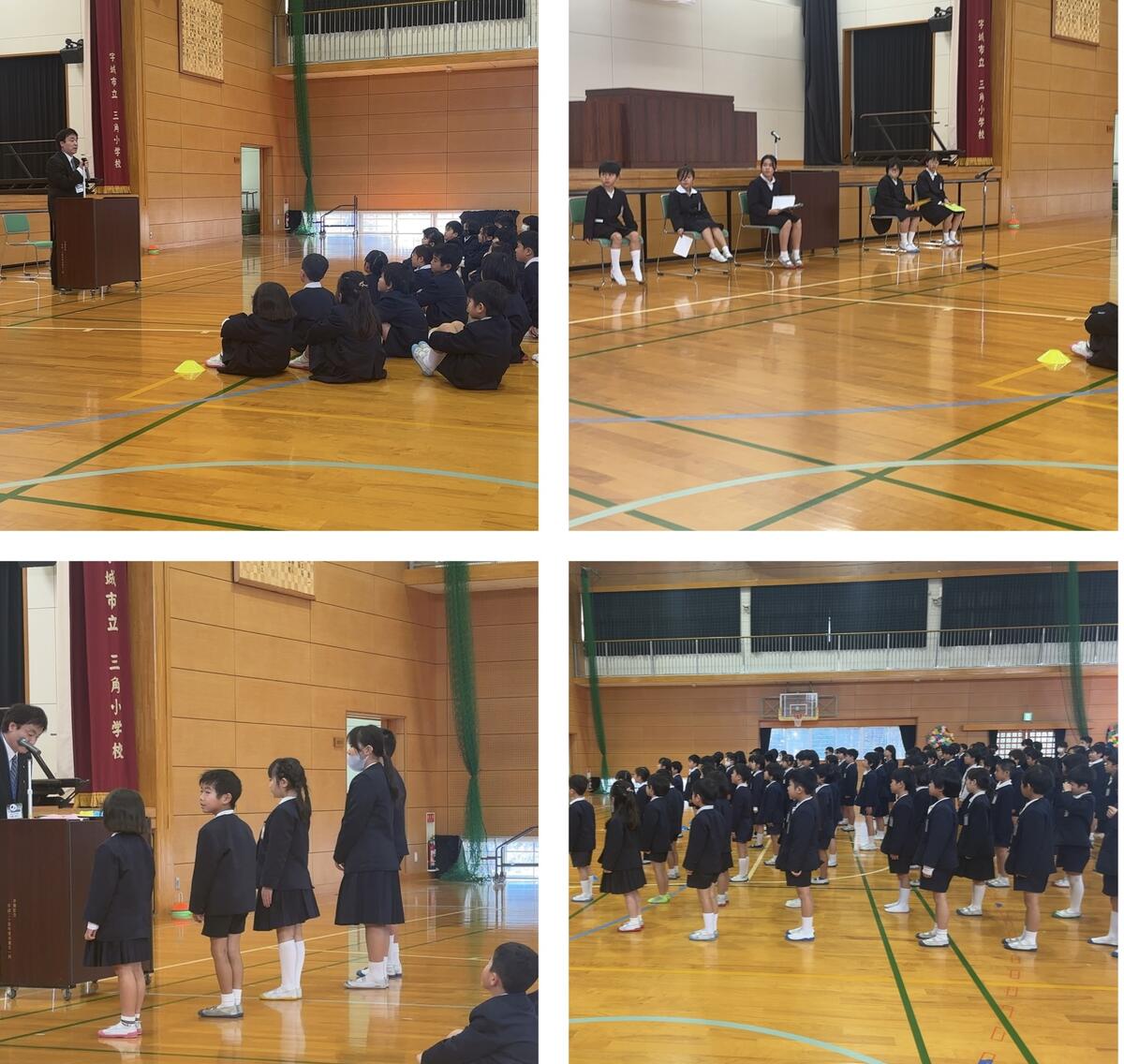 まず、6年生からの三角についてのプレゼン発表と、合唱がありました。最高学年としての立派な姿でした。