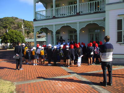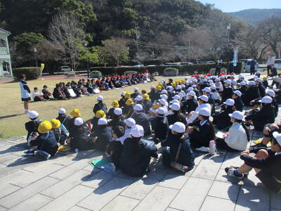 晴天の中、本日の午前中、6年生による青海小学校合同の西港ガイドを行いました。本校全児童および青海小学校の4・6年生のみんなで実施しました。はきはきとした大きな声で堂々とガイドする6年生は、本当に立派でした。地域の方々も感心しておられました。みなさん、本当にお疲れ様でした。ありがとうございました。
