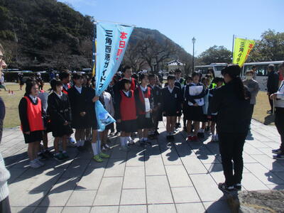 本校では、「総合的な学習の時間」の大きな柱の一つとして、世界遺産に登録されました三角西港を中心にして取り組んでいます。