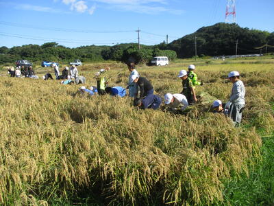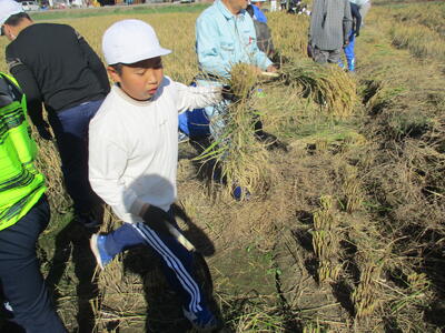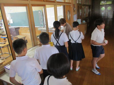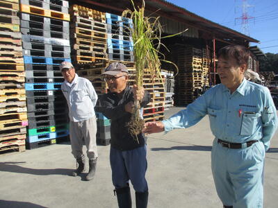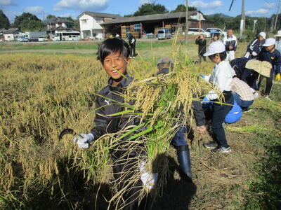 本日の夕方、田植えや稲刈りでお世話になった池田さんや櫻井さん、木村さんが来校くださり、約60Kgのもち米を持ってきてくださいました。5年生の子どもたちは、大喜びで池田さん方と一緒に写真を撮りました。