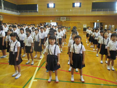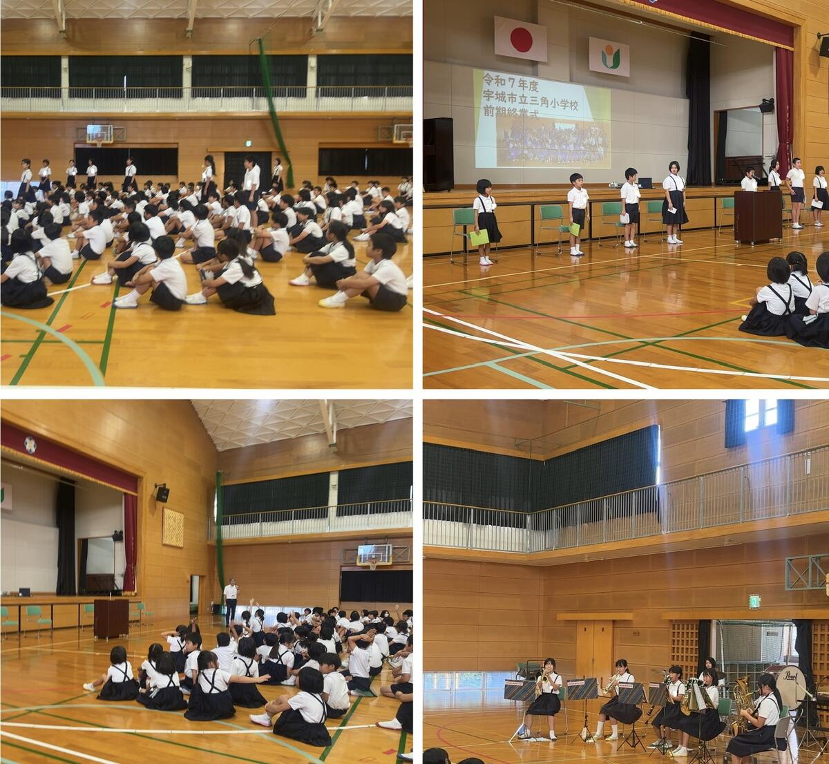 10月10日(金)は前期終業式がありました。各学年の代表の児童がこれまでの成長や後期から頑張りたいことを発表しました。真剣に発表する姿やそれを聞く児童の姿もとても立派でした。その後、校長先生からのお話があり、最後には音楽部の発表もありました。素敵な音楽を演奏してくれました。明日から短いですが秋休みに入ります。改めまして、前期は本校の教育活動にご理解とご協力いただきありがとうございました。後期からも子供たちの成長のために職員一同、尽力してまいりますので何卒よろしくお願いします。