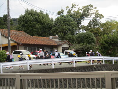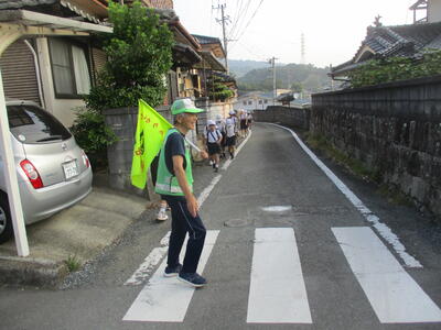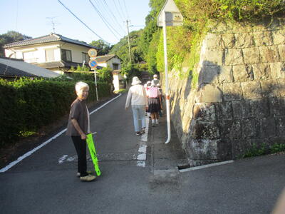 登校坂を登ってきた子どもたち 元気にあいさつができます