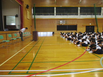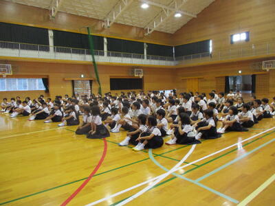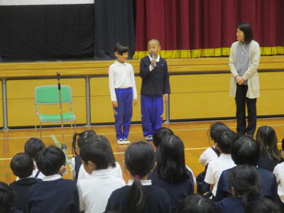 また、集会の態度も皆いいです。発表練習もしっかりやっています。片付けも6年生が真っ先に動いて、いすの片付けやカーテン、窓しめなど自分たちで動いて短時間でやります。見ていてとても気持ちがいいです。自慢できる子どもたちです。