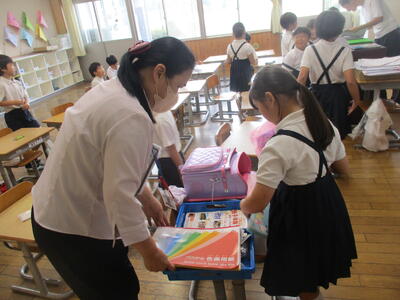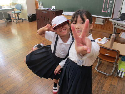 放課後校長室で仕事をしていたら、かわいいお客様が来室してくれました。「校長先生、さようなら~」と心が温かくなるあいさつでした。6年生の2人組です。