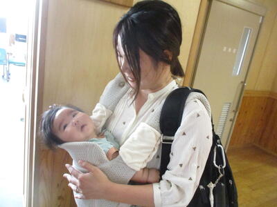 本日、育児休暇中の大友先生が赤ちゃんを連れて来校してくださいました。かわいい赤ちゃんに皆いやされました。育児楽しみながらがんばってくださいね。三角小の子どもたちも数年前は赤ちゃんでした。私は58年前・・・。