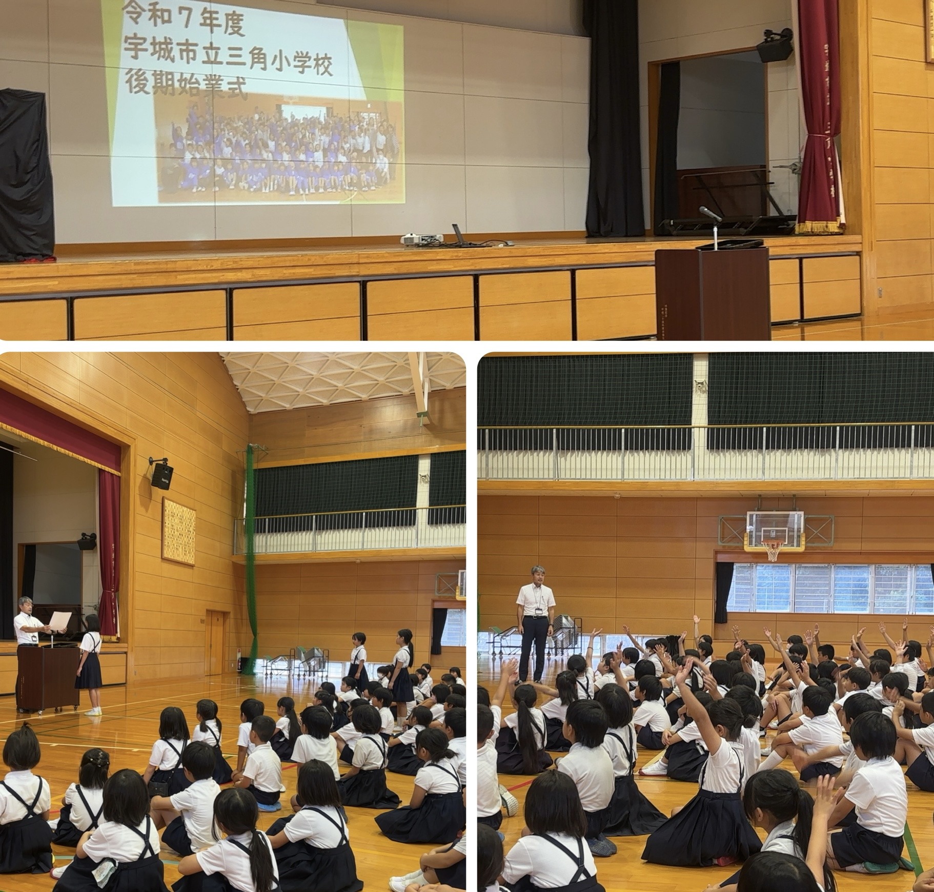 10月16日(木)は後期始業式がありました。秋休みも明けて、子供たちからも気持ちを切り替えてまた頑張っていこうという意識を強く感じることができました。いよいよ今年度も折り返しです。三角小学校全体で頑張っていければと思います。