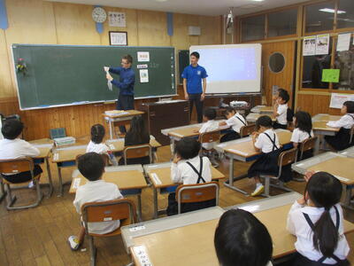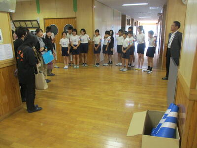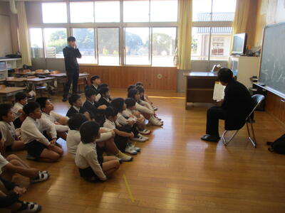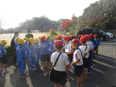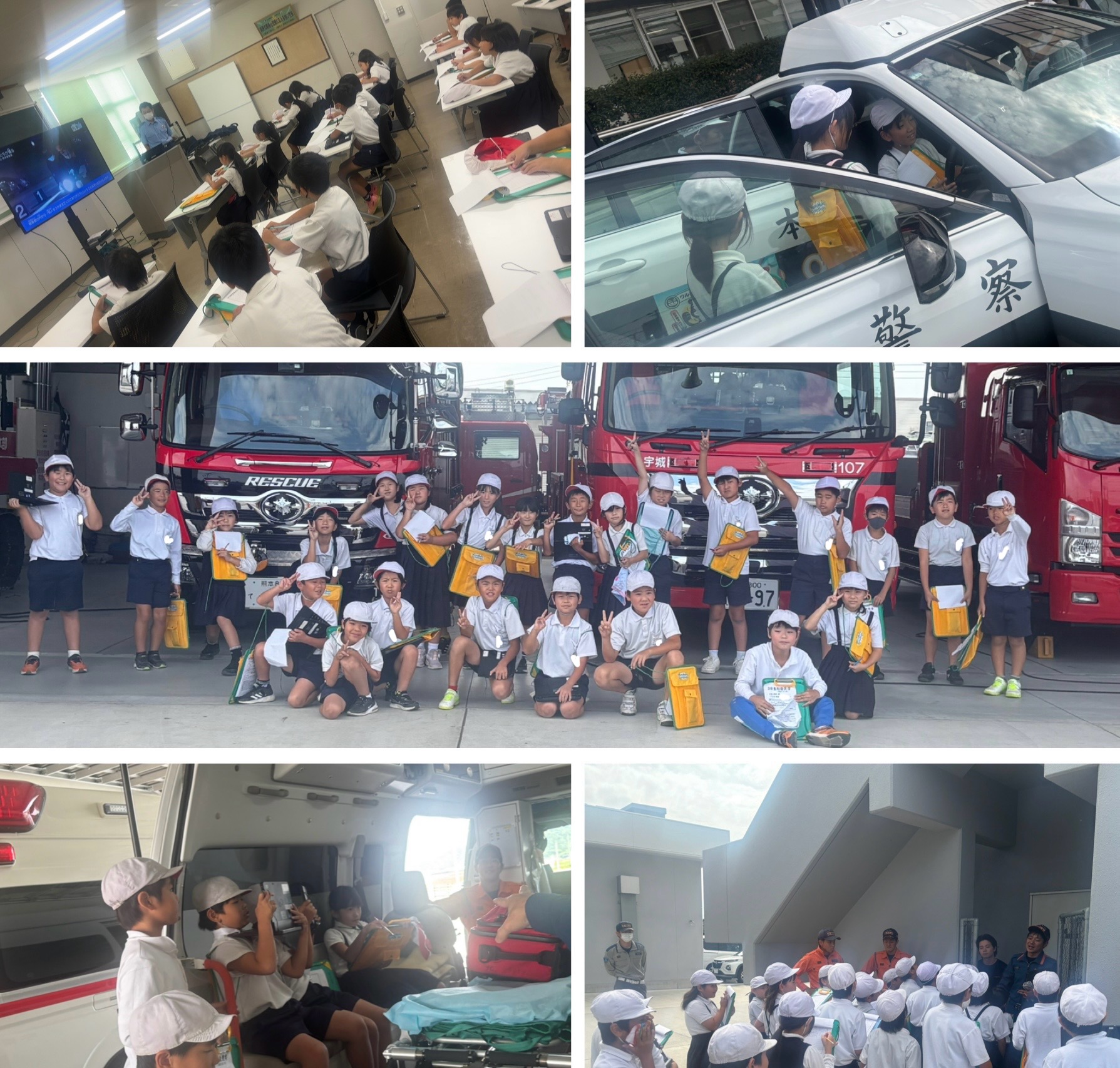 本日は本校の3年生が宇城警察署と北消防署へ社会科見学へ行ってきました。少し天気の心配もありましたが、無事にいくことができました。訓練の様子を見せてもらったり、実際に道具を触らせてもらえたりと、貴重な体験をすることができました。子供たちもとても興味津々で学んでおりました。
