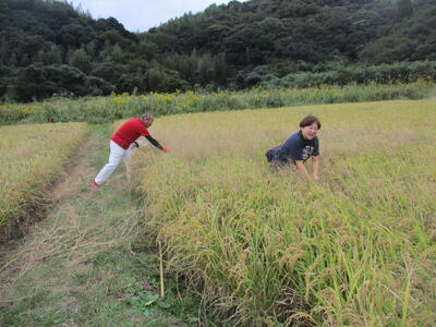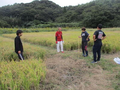 田んぼで草取り 櫻井先生も ありがとうございます。