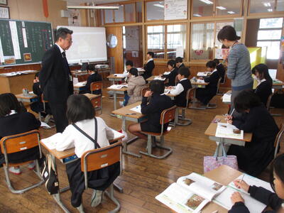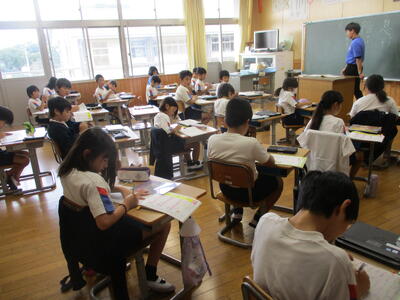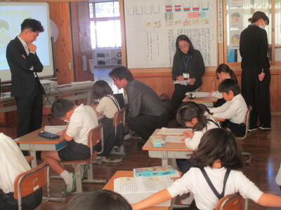 本日、宇城市教育委員会の教育審議員である豊田先生に来校いただき、授業参観及び授業者への指導をしていただきました。4年生は栗﨑教諭の道徳、3年生は山下教諭の算数でした。どちらも意欲的な子どもの姿が見られました。日々の授業の積み重ねが学力定着に繋がります。授業力向上に努めてまいります。お家での家庭学習もよろしくお願いいたします。