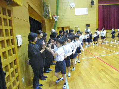 5・6年生が「いってらっしゃい!」 3年生「行ってきます!」