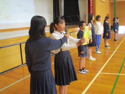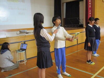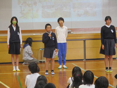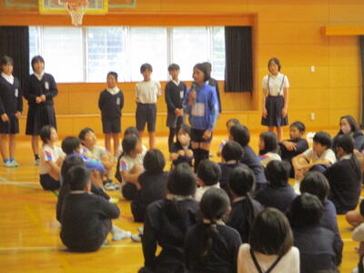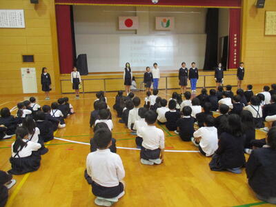 本日、昼休みの後、児童集会がありました。本日の担当は図書委員会でした。読書の秋、いろいろな本を紹介してくれました。