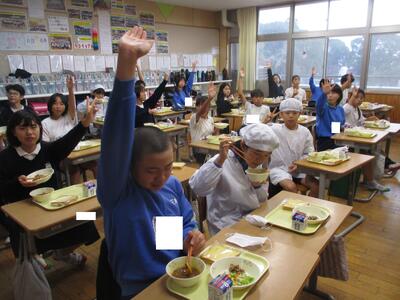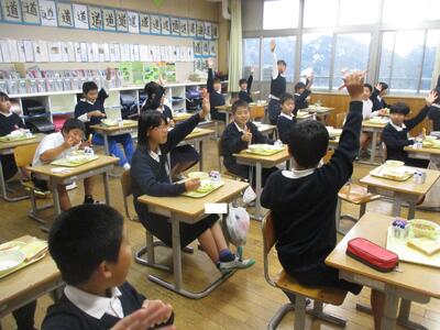 「カレーうどん、好きな人?」と、全学年聞いてみました。