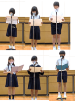 10月6日(金)は、前期終業式でした。前期半年の節目となる式として、各学年の代表者が作文を発表しました。運動会や水泳、算数の勉強、姿勢、返事やあいさつ、修学旅行や応援団団長などそれぞれが自分の頑張ったことをしっかりと発表していました。それを聞く子どもたちの聞く態度も真剣で、三角小学校としての前期の成長を感じることができました。