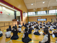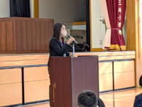 校長先生からは、地震の被害に遭われた方々へ寄り添う気持ちをもつことや、次の学年へ向けて残り3か月でしっかりと成長をすることについてお話がありました。