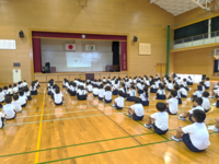 全学年が体育館に集まって、運動会の振り返りをしました。感想発表では、多くの子どもが積極的に挙手をしていました。どの学年の子どもも運動会で頑張ったこと、心に残ったことを発表しており、子どもたちにとって思い出に残る運動会になったことが伝わりました。